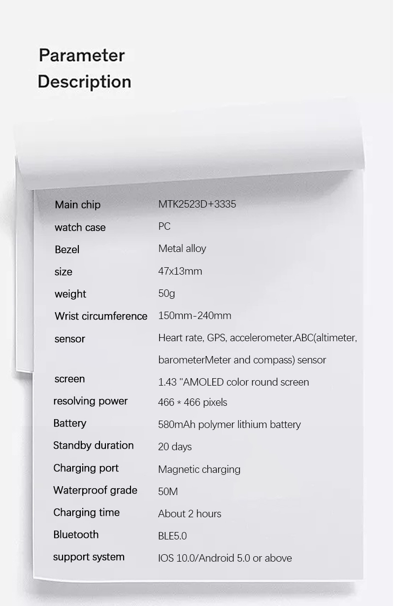 3. Screen resolution: 466x466 1.43" AMOLED ultra-clear HD screen display