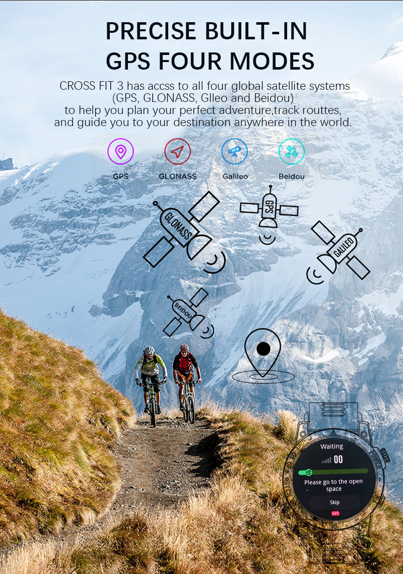 CROSS FIT 3 has accss to all four global satellite systems(GPS, GLONASS, Glleo and Beidou)to help you plan your perfect adventure,track routtesand guide you to your destination anywhere in the world.